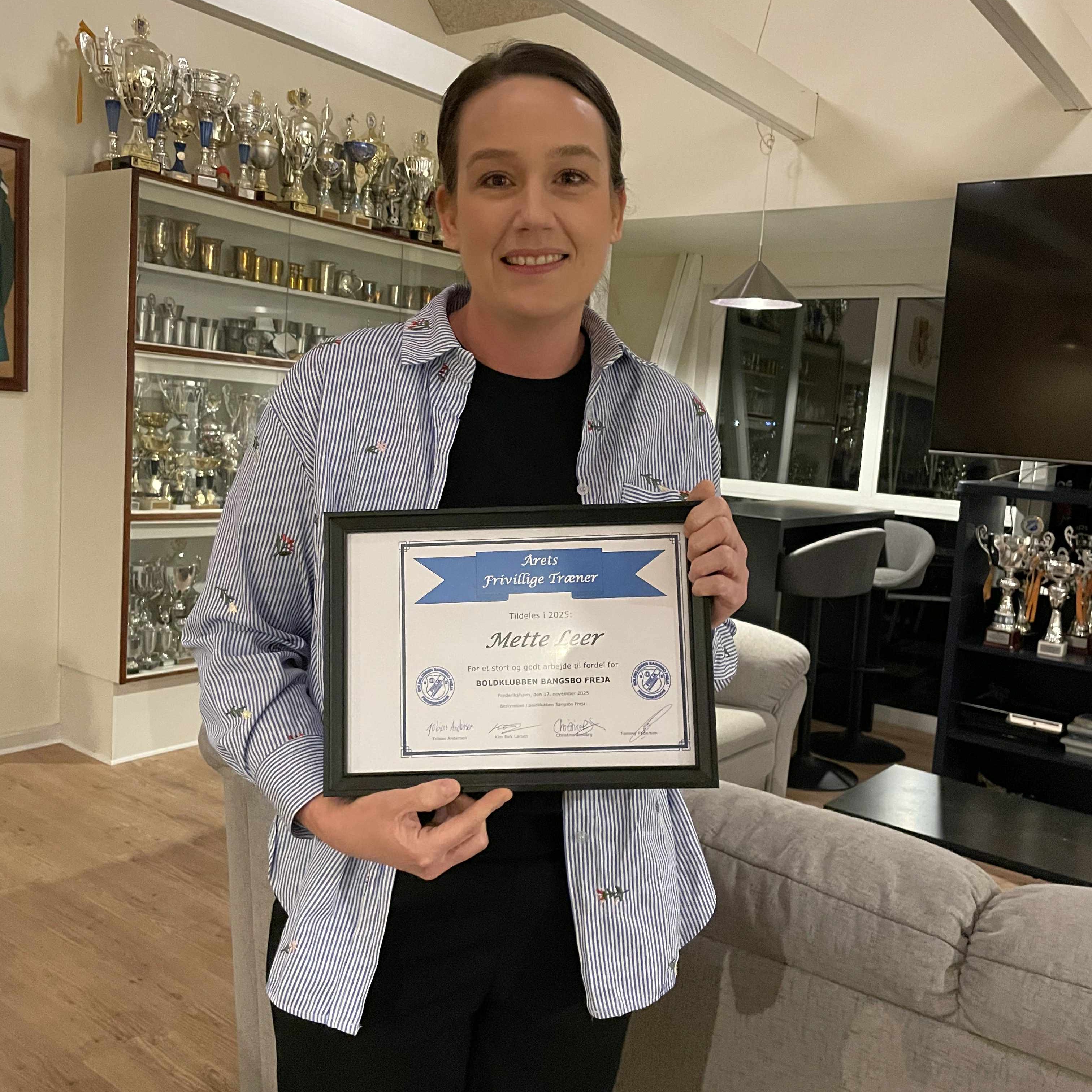 Det var ikke let at vælge, da vi sætter pris på alle vores trænere i klubben, men vi valgte at prisen skulle gå til mette Leer, som er træner på klubbens U7 hold.